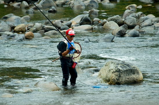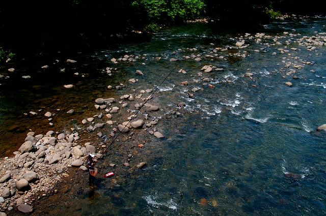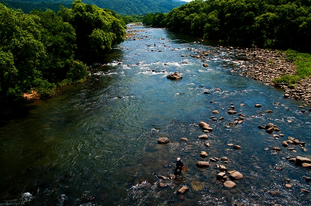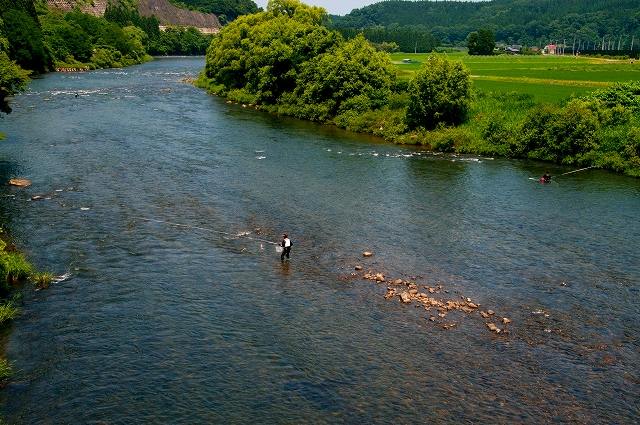 由利地区吉沢橋から矢島地区坂之下橋上流まで20人ほどの釣り人が見受けられました。