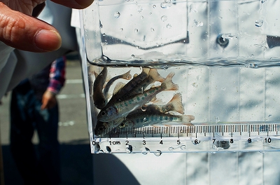 サクラマス稚魚の放流