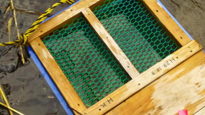 当日の見回りで魚影が確認されたため、直ちにメスを確保し定置網を仕掛けたところ翌11日朝にオス一尾を捕えたものです。