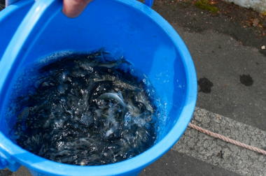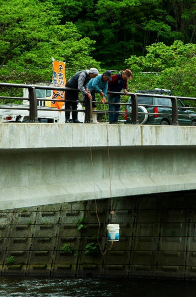 事業 あゆ放流 鮎川へのアユ稚魚の早期試験放流 事業 2025.04.072025.05.02 この記事は約1分で読めます。 令和元年5月22日: PM6:00 鮎川へのアユ稚魚の早期試験放流について 子吉川支流鮎川において県稚魚提供による早期試験放流が行われました。 県からの100㎏に加え放流業者の石川商事からも50kgの提供を受け合計150㎏を5カ所に放流しました。 当日の河川水温14℃、平均12g・体長12㎝と順調に育った稚魚が放流されました。 車で入れないところはバケツで運搬・・・