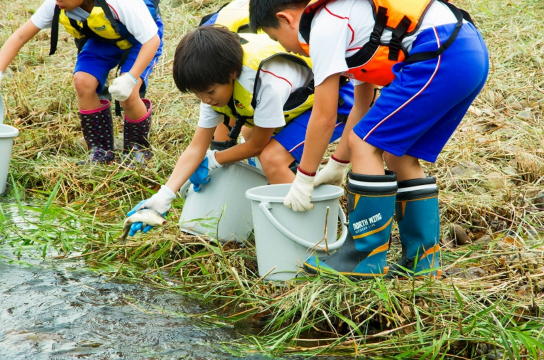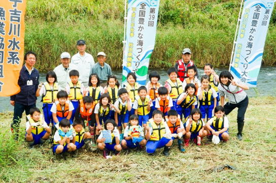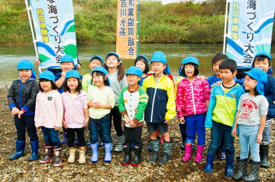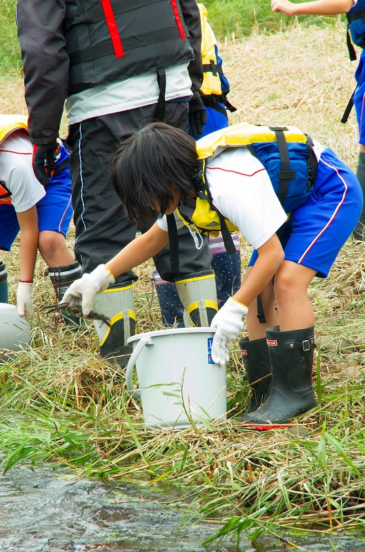 また、この体験放流ではこの日のために捕獲した子吉川名産のモクズガニ20kgほども子供たちによって放流され、放流場所の川原は子供たちの大きな歓声に包まれていました。