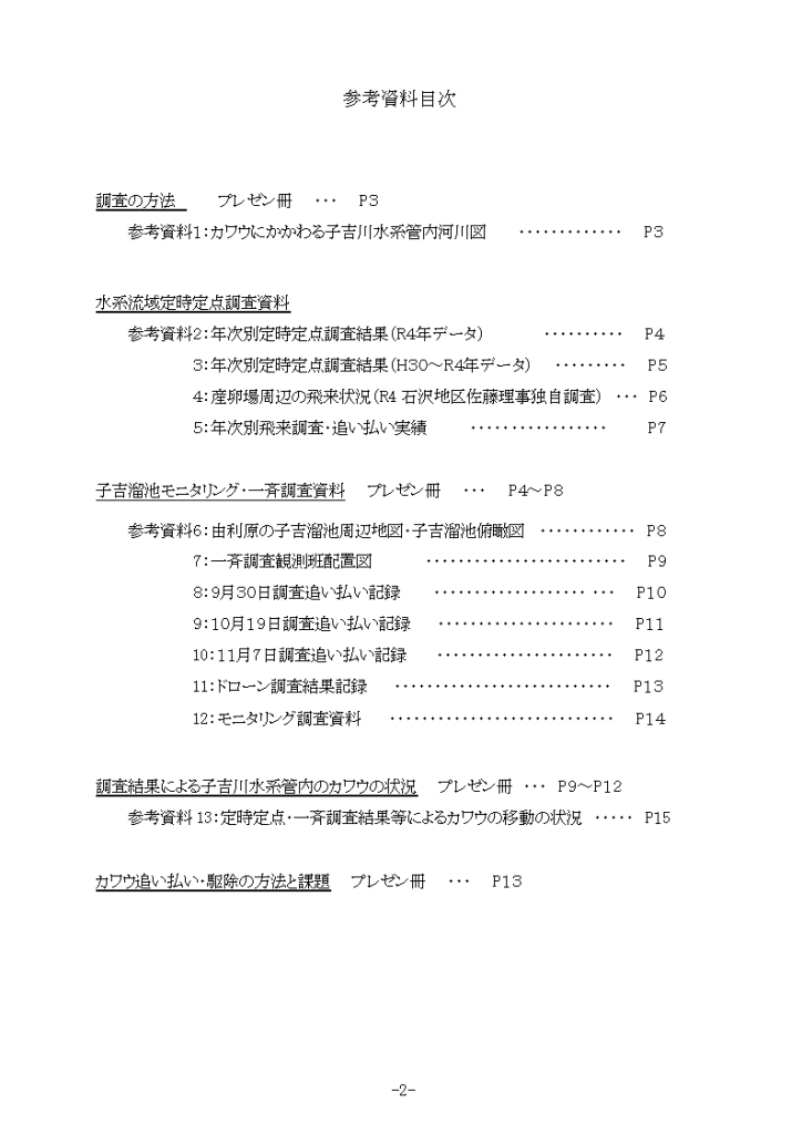 ご案内事業 報告川鵜駆除 調査資料を公開 ご案内 2025.04.082025.08.25 この記事は約1分で読めます。 令和4年12月27日:カワウ対策ページ公開 子吉川水系内におけるカワウ対策状況を知っていただくために下記協議会で報告された調査資料を公開しました。 詳しくは 《カワウ対策状況》ページをご覧ください。