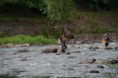 今年の人出は、西滝沢水辺プラザまで2、吉沢橋1、木在橋0、矢島おとりアユ3、坂之下橋3、瀬中石0、大栗沢1、小又橋までが0、その上流から本流鳥海河川公園までは0で合計10人でした。