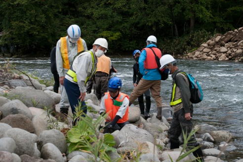 事業河川 調査鳥海ダム 河川調査 事業 2025.04.082025.08.25 この記事は約1分で読めます。 R3年10月6日:鳥海ダム工事にともなう河川調査への立ち会い 子吉川上流の百宅地区に建設される鳥海ダム工事が本格化、仮排水路への河道切り替えのため流れをせき止める工事の前に棲息生物調査が行われました。 漁協執行部・地元役員などが立ち会うなか、定置網などで捕獲された魚類は種類を確認・寸法などを計測した後、上流の法体の滝直下などに放流されました。 河道切り替え後も水たまりとなった河道跡に残った魚類を調査し、移植作業は行われます。