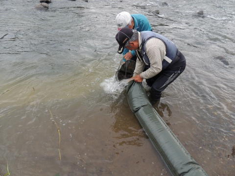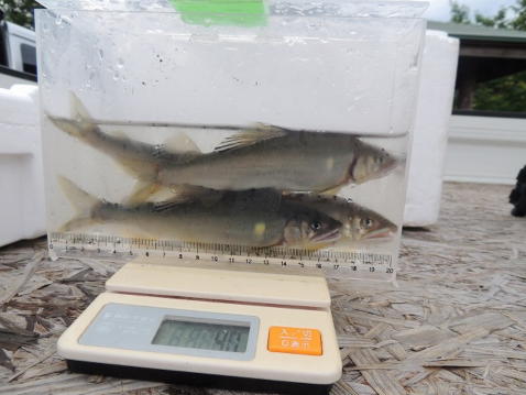 事業河川 あゆ放流 あゆの成魚放流 事業 2025.04.082025.04.14 この記事は約1分で読めます。 令和6年 7月19日(月): PM2:00 矢島地区坂之下河川公園において漁協で初めてとなるあゆの成魚放流を実施しました。 阿仁川あゆセンターの協力を得て最初に体長17㎝のあゆ30㎏、次にやや小さい12㎝ほどのあゆ60㎏、あわせて90㎏を放流、放流したあゆの状態を網で掬って確認するとともにこの後も経過観察を行うこととしました。