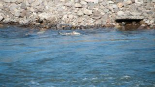 令和2年10月25日: PM6:00 今年も子吉川にサケが回帰してきました。石沢川石沢橋付近